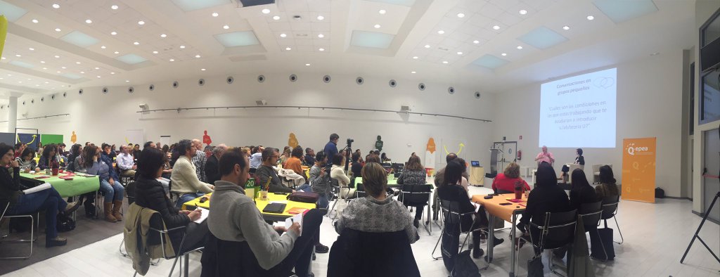 Tras la fase de "co-percepción” de lo que se estaba haciendo, se pasó al trabajo en grupos de cinco-seis personas, para compartir. Hicimos un ejercicio de introspección y terminamos con las fases de cristalizar y prototipar propuestas de cambio.