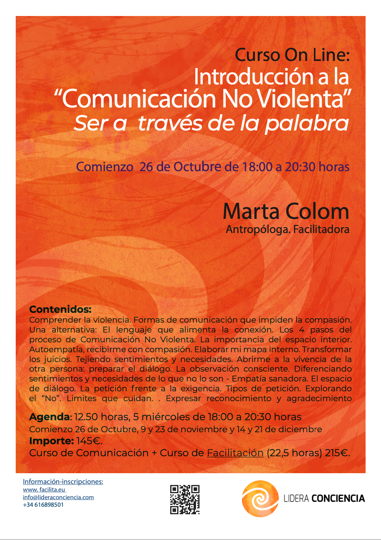 Curso de Comunicación No Violenta + Curso de Facilitación de procesos grupales 215€.